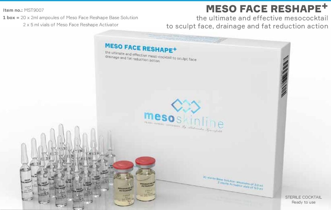 Είναι συμπυκνωμένο, λιποδιαλυτικό και αντιγηραντικό mesococktail ειδικά σχεδιασμένο για το πρόσωπο, τον λαιμό και την περιοχή των βραχιόνων. Η ενεργή του φόρμουλα έχει σχεδιαστεί για την μείωση του λίπους του προσώπου και για τις αποθέσεις λίπους στην περιοχή του λαιμού και των χεριών.