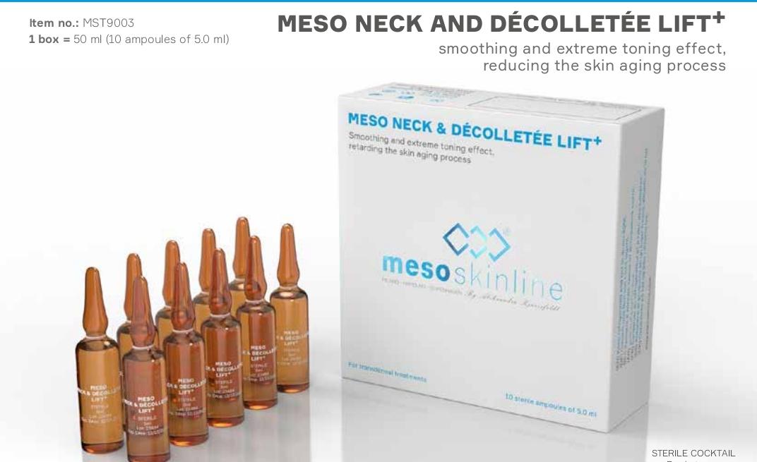 Το meso neck and decollet'ee lift περιέχει τα τρία πιο δραστικά συστατικά για μια άκρως αποτελεσματική αντιρυτιδική θεραπεία: dmae+ elastin+ methylsilanol mannuronate.